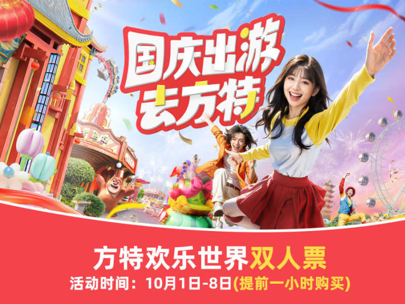 【提前1小时购买•国庆专享全天双人票】郑州方特欢乐世界全天双人票~地铁8号线直达~日夜畅玩!乐园夜场狂欢加时,项目一票畅玩!(有效期:10.1-10.8;换票入园)